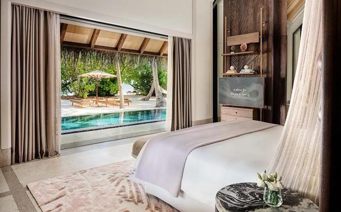 JOALI Maldives is located on Muravandhoo Island in the Raa Atoll, a serene haven in the northern Maldives. Nearby, guests can explore vibrant coral reefs, enjoy dolphin cruises, and visit local islands for cultural immersion. Villas offer private pools, curated art pieces, outdoor rain showers, butler services, and luxurious interiors. On-site dining includes gourmet experiences at Vandhoo, Saoke, and Bellinis, offering global and Japanese-Italian fusion cuisine. The resort features a wellness spa, art studio, water sports centre, and kids’ club, ensuring a joyful escape for all ages.
