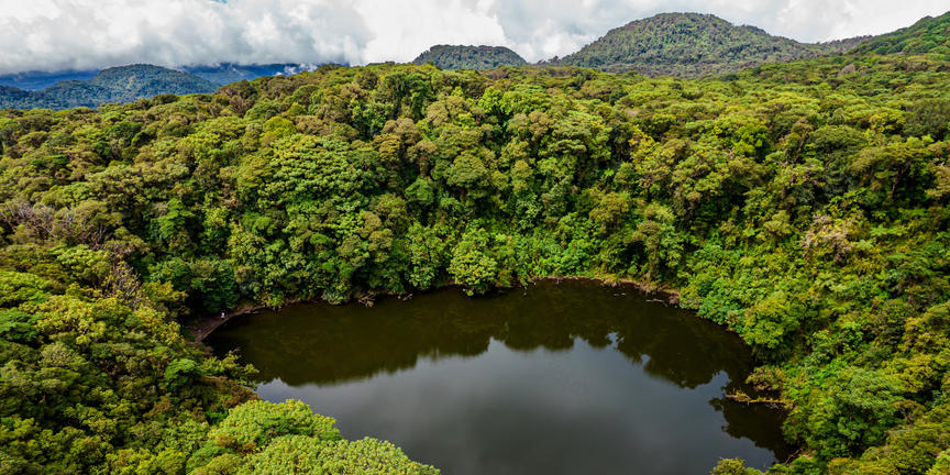 One of the biggest and most diverse national parks in Costa Rica, Braulio Carrillo National Park is found on the lush and fertile Central Volcanic Range, covered by rolling hills and exuberant vegetation, an easy day trip from San Jose. Among the park's dense forests and canyons, waterfalls are several rivers, waterfalls, and streams, a pristine landscape explored through several challenging hikes. For the more easygoing traveller, a tram ride that ascends to an elevation of 170 metres is recommended to take in the sublime view of the tropical rainforest. The park is home to more than 500 species of birds, 6000 species of trees and plants, and over 135 species of animals, including the magnificent Quetzal, toucans, guans, eagles, jaguars, tapirs, monkeys and South America's largest venomous snake, the Bushmaster.