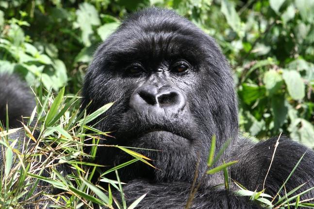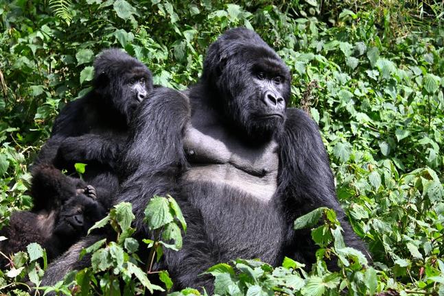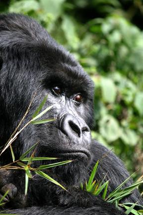 Mountain Gorillas (Gorilla beringei beringei), unlike lowland gorillas, are only found in the Virunga Mountain region straddling the DRC, Rwanda and Uganda borders, as well as the Bwindi Impenetrable National Park in Uganda. The mountain gorilla parks include; Bwindi Impenetrable National Park in Western Uganda, Mgahinga National Park, in South-West Uganda, Park Nationale de Volcanoes, in North-West Rwanda, and Virungas in the Eastern Democratic Republic of Congo (DRC). Uganda alone has a population of 400 gorillas in Bwindi Impenetrable Forest, roughly half of the world’s population with several habituated groups.