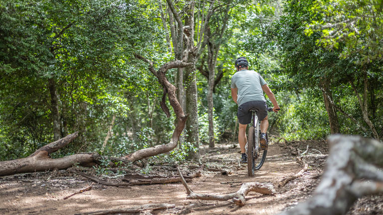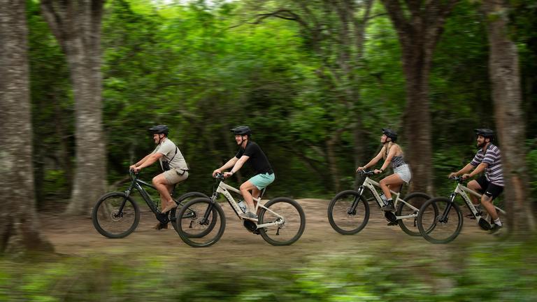 Cycle through the endangered Sand Forest at &Beyond Phinda Private Game Reserve on a battery power assisted e-bike that gives a boost via a throttle to make pedalling a little easier. There are three well-marked routes available (between 5 and 6 km / 3 and 3.7 mi), ranging in effort, skill and scenery. This experience is at an additional cost, and subject to availability and weather dependent.