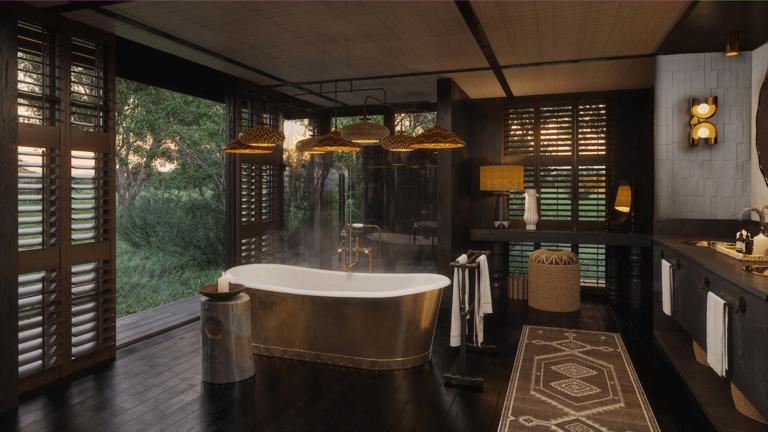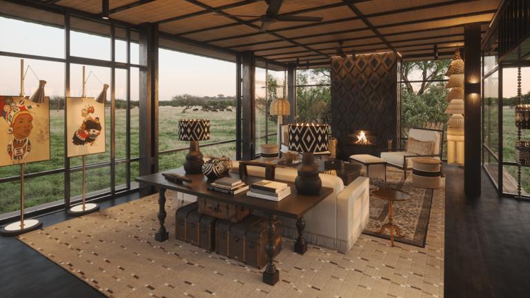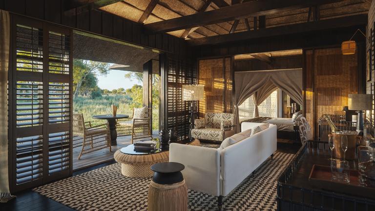 Each air conditioned Suite features an expansive bedroom with its own sitting area, personal bar, luxurious ensuite bathroom opening onto an outdoor shower and a separate dressing room. Outdoors, a private pool, shaded sala and deck overlook the grassy wetland ahead, alive with wildlife. The main guest area includes a welcoming firepit for pre-dinner drinks and a thoughtfully curated library. Meals unfold in various settings, including an open, all-weather deck for al fresco dining with views of the wetland beyond.