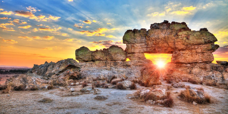 Within the southwestern Ihorombe region, this national park is known for its varied and unique terrain. Centuries of wind and rain erosion have whittled the landscape of Isalo National Park into a series of deep gorges, vast canyons and bizarrely shaped sandstone rock formations, punctuated by palm-lined oases and sprawling grasslands. This spectacular scenery makes the park a magnet for hikers, with treks ranging from a few hours to several days. Besides the striking vistas the park affords, visitors will also be able to enjoy cooling off in the natural swimming holes dotted across it and catch glimpses of the resident lemurs and other endemic wildlife species.