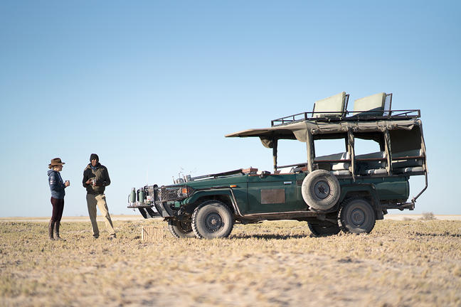 Planet Baobab's game drives take visitors deep into the Ntwetwe Pan, the larger of the two Makgadikgadi Pans. Participants can observe a vast expanse of sparkling salt that stretches as far as the eye can see - and then some! Amazingly, there is life here and game drives can reveal some of the unique desert species such as bat-eared foxes, springbok, kori bustards and perhaps even the magnificent desert-adapted elephants and lions. With the onset of summer rains in December, the continent's second largest mammal migration begins, the arrival of zebra and wildebeest, and life becomes hectic as the ungulates feed on the fresh green grass - and the predators have plenty to eat.