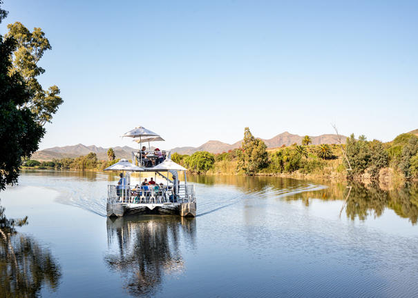 Die Viljoensdrift River Cruise bietet eine entspannte und malerische Fahrt entlang des Berg River vor den sanften Weinbergen der Paarl-Wellington Winelands. Die Gäste sind eingeladen, auf einer gemütlichen Kreuzfahrt zu entspannen und dabei die preisgekrönten Weine von Viljoensdrift zu genießen. Das ruhige Tempo des Bootes bietet Zeit, um die natürliche Schönheit zu genießen, die Vogelwelt zu beobachten und die Atmosphäre dieser bewirtschafteten Weinfarm aus einer einzigartigen Perspektive zu genießen. Die Viljoensdrift-Flusskreuzfahrt ist eine ideale Art, einen Nachmittag zu verbringen und bietet eine unvergessliche Mischung aus erlesenem Wein, guter Gesellschaft und ruhiger Umgebung.