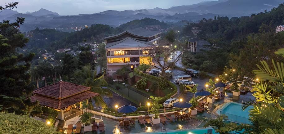 Hotel Topaz is a luxury retreat perched atop the scenic hills of Kandy, Sri Lanka’s cultural capital. Guests may choose from spacious rooms and suites equipped with modern amenities such as air conditioning, minibars, hairdryers, and private bathrooms. The hotel boasts facilities such as an outdoor swimming pool, a restaurant, and parking. Activities available include visiting nearby attractions like the Bahirawakanda Vihara Buddha Statue, the Kandy Museum, and the National Museum.