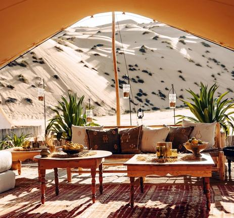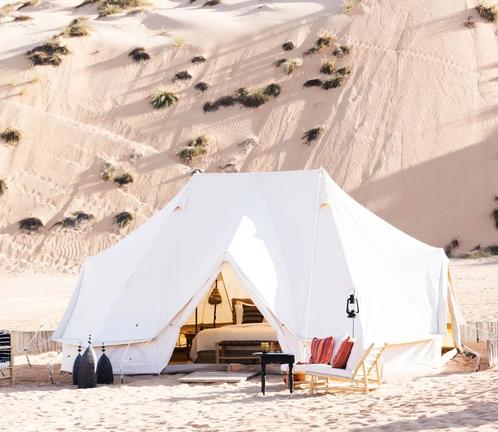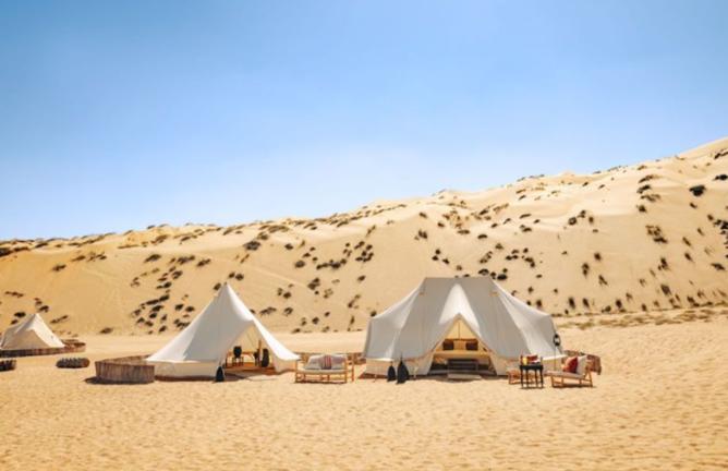 Tucked amid the golden dunes of Wahiba Sands, Magic Camps offers an exclusive desert retreat for the discerning traveller. Sixteen spacious, eco-conscious tents blend Bedouin charm with refined comfort, featuring plush beds, soft cotton duvets, ensuite bathrooms, and warm electric lighting. Each tent boasts a private terrace for sunrise coffees or starlit musings. Guests gather in the traditional Majlis lounge to savour freshly prepared Omani cuisine and share stories by candlelight. Leisure unfolds around the campfire or in curated cultural encounters, while days brim with desert adventures—from dune explorations to guided walks and celestial stargazing beneath the vast Arabian sky.