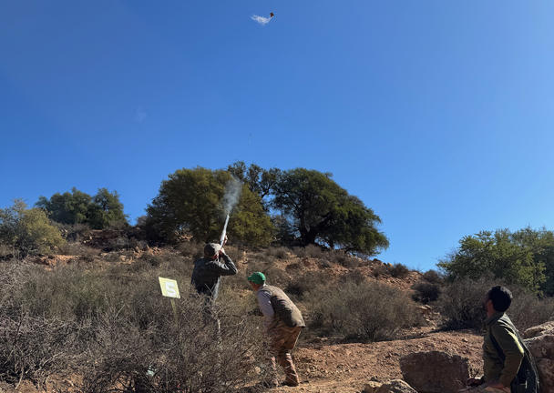 Mr. A. Laraïchi and his sion Mohammed, with over 35 years of experience organizing wild bird shooting in Morocco for international sportsmen, together with a Spanish expert in driven partridge shooting, have joined to create the first Moroccan partridge shoot organization known as HAJAL ATLAS. The shooting area “Domain Chafarni” is our fauna & flora reserve, located at 65 Km from Taroudant, in the base of the Atlas Mountains, offering breathtaking views. Parties may be formed by number of 6 up to 8 guns. There will be with 3-4 drives per day depending on harvester partridge. Partridges shot and wounded are counted by the “secretarios” by loud voice and agreed after every drive with the shooter, so that total bag account is calculated by their declaration. It’s recommended to use a pair of guns / each hunter. There is a snack and beverages served after the second drive and a magnificent lunch served in a typical Berber tent after the shoot each day.
