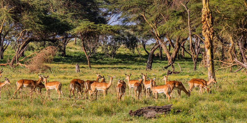 Crescent Island Game Sanctuary ligt aan Lake Naivasha in de Great Rift Valley in Kenia en ligt op een schiereiland in de vorm van een halve maan, met aan de oevers acaciabossen en open grasland. De waterkant trekt visarenden en aalscholvers aan, terwijl giraffen, zebra's, impala's en gnoes vrij grazen in het reservaat van 0,6 km², onbegrensd door hekken en veilig te voet te benaderen. Omdat er geen grote roofdieren zijn, verkennen bezoekers met een gids, terwijl ze rustig door kort savannegras lopen terwijl Mount Longonot in de verte oprijst. Boottransfers vanaf het vasteland passeren groepen nijlpaarden en watervogels voordat ze de kust bereiken. Eenmaal aan land ontvouwen fotografie en vogelobservatie zich op natuurlijke wijze tijdens gestage wandelingen, met een duidelijk uitzicht over de Rift Valley dat het circuit compleet maakt.