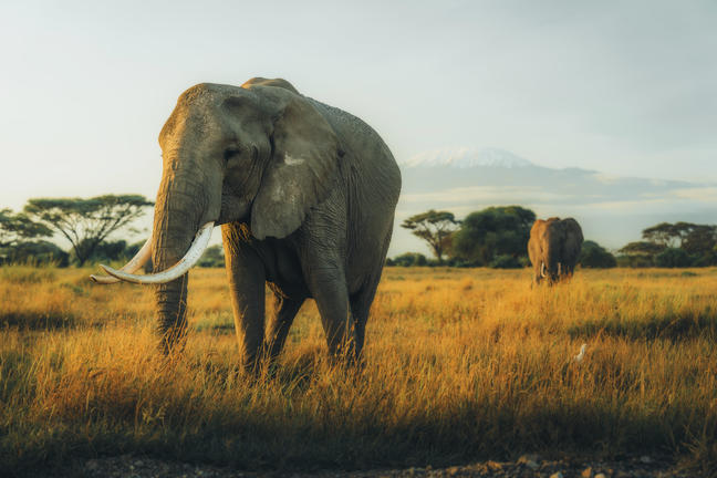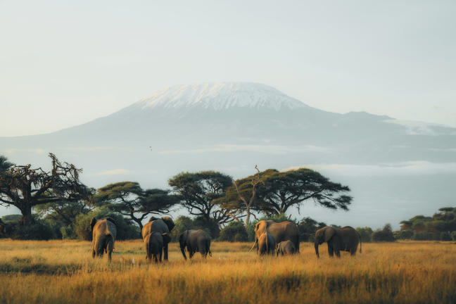 Experience the breathtaking beauty of Amboseli National Park on a day trip that promises unforgettable vistas and wildlife encounters. Begin your adventure with the majestic Mount Kilimanjaro as the backdrop, providing a stunning setting for photography. Traverse the beautiful landscape to find vibrant flamingo flocks wading in the shallow waters, painting a striking contrast against the serene plains. Amidst this picturesque scenery, watch herds of majestic elephants roam freely, showcasing their gentle might. Amboseli's panoramic views and rich biodiversity offer a quintessential Kenyan safari experience, perfect for nature lovers seeking a day filled with awe and wonder.