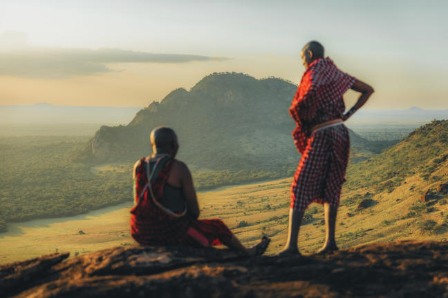Take a longer day hike across the hills and plains, accompanied by your experienced Maasai scouts, learning to read the signs of the animals and hearing how the landscape was formed, crossing over ancient lava flows and ending in a tented camp under a baobab tree for the night. Or, best of all, take the rarest of walks up into the Green Hills and through the Chyulu Cloud Forest: wild forest hogs, rare Turaco birds, huge silver-cheeked Hornbills, antelope, elephant…all under the cool shade of giant strangler fig trees that rival the strangest most mystical trees in the world.
