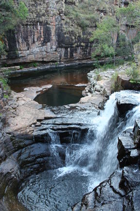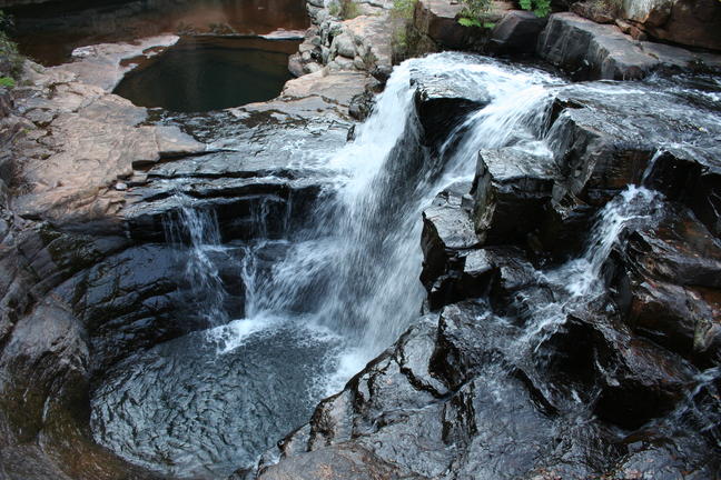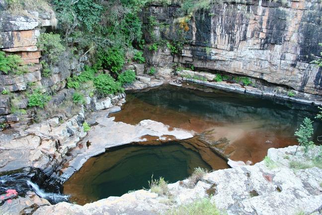 The waters of the Mutale River fall into a naturally formed pothole and disappear for some distance before reappearing and continuing on its course.