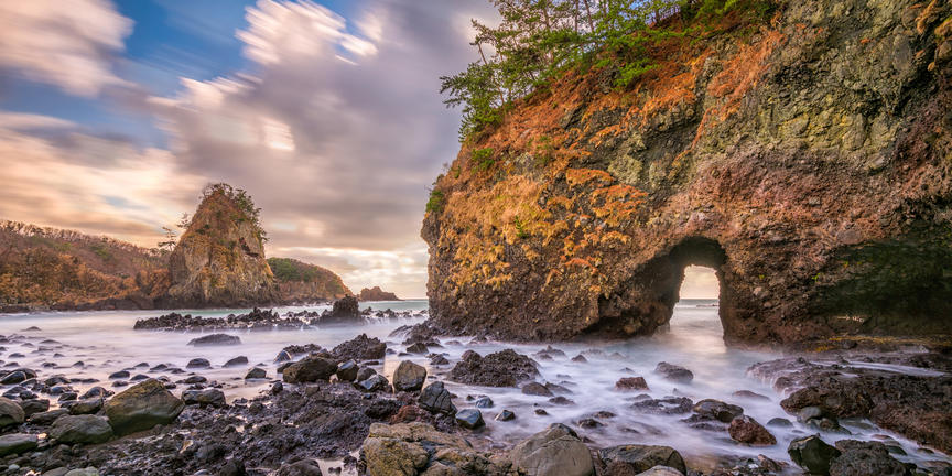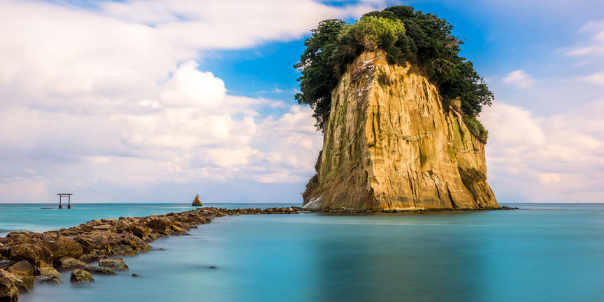 Making up the northern tip of the Ishikawa prefecture, the remote Noto Peninsula is the largest peninsula on Japan’s western coast. The entire peninsula has been designated as a national park, the Noto-hanto Quasi-National Park. This rugged headland is dotted with rural villages and is known for its spectacular coastal scenery, featuring unspoilt seascapes with densely-forested shores and rugged rocky outcrops. Visitors can enjoy many attractions including: the village of Wajima, home to one of Japan’s largest morning markets; the laidback Wakura-onsen, a hot spring town boasting seawater hot springs; and Rokkosaki Lighthouse at the northern Rokkosaki Point. Don’t miss Myojoji Temple, a temple complex featuring a five-storied pagoda. Popular activities include: fishing, camping, picnicking, swimming and sightseeing.