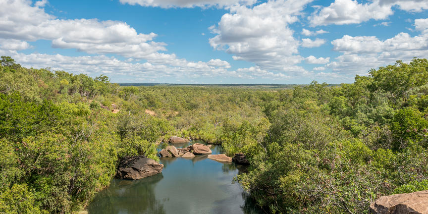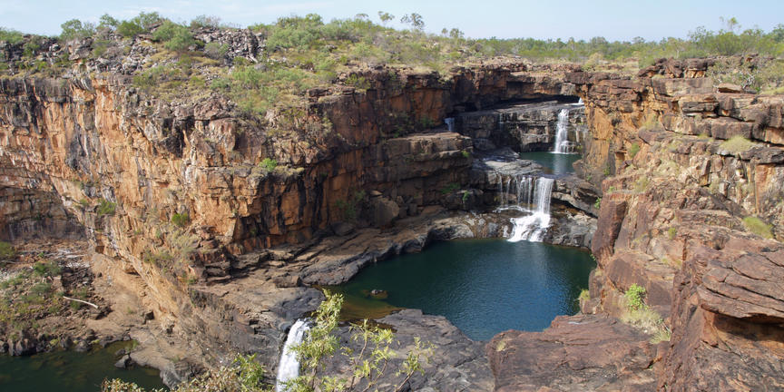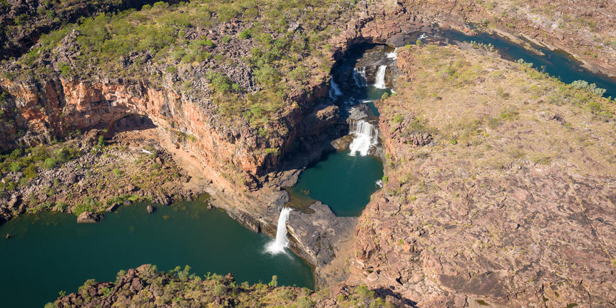 Winding its way through the Kimberley region of Western Australia, the Mitchell River offers an ideal habitat for an extraordinary diversity of wildlife including 50 species of mammal, 220 species of bird, and over 86 species of amphibians and reptiles. This large, perennial river and its naturally beautiful surrounds are protected by the impressive Mitchell River National Park, which features a number of exquisite waterfalls and gorges carved into the layered sandstone of the Mitchell Plateau. Visitors can look forward to: canoeing or rafting through the tranquil pools and turbulent rapids down to the Gippsland Lakes; marvelling at the spectacular three-tiered Mitchell Falls; swimming in the refreshing Surveyors Pool; and exploring countless Aboriginal rock art sites and areas of cultural significance to the indigenous Wunambal people.