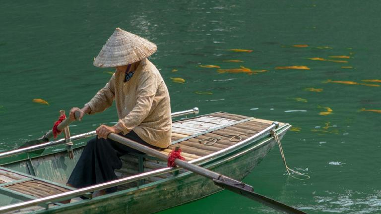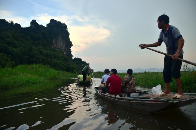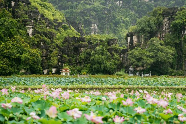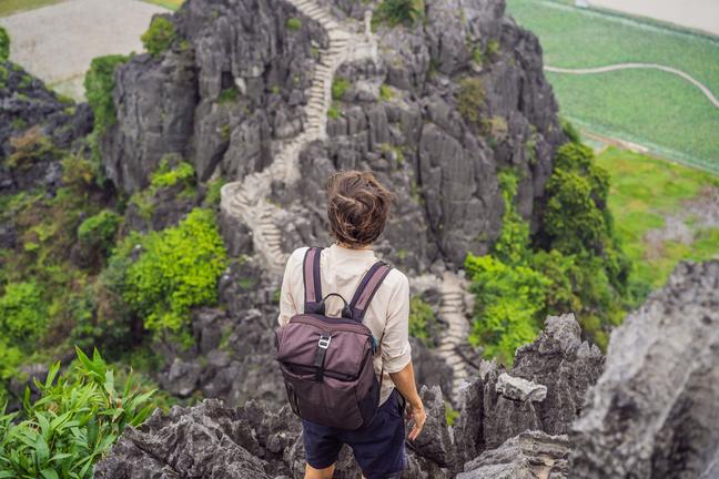 Man on top of pagoda of Hang Mua temple - Ninh Binh - Vietnam