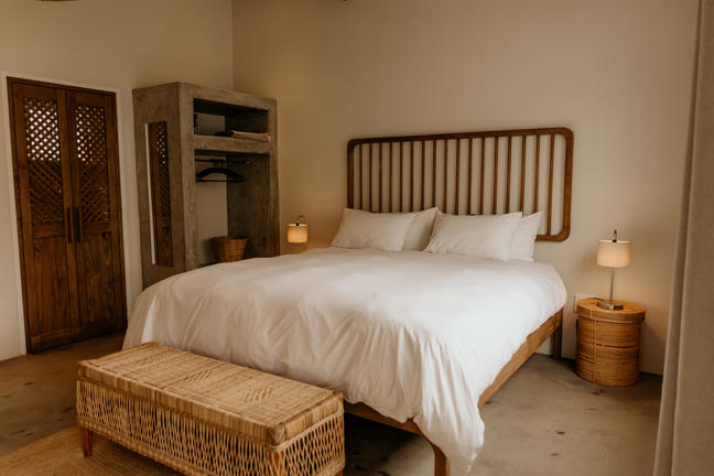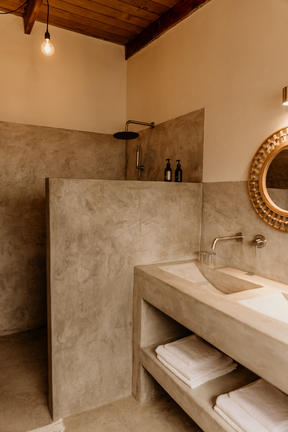 Our Double Rooms are furnished with a king size bed and have an en-suite bathroom. All the rooms have access to a semi-private patio area. Ideal for individuals or couples on a vacation or a work trip.