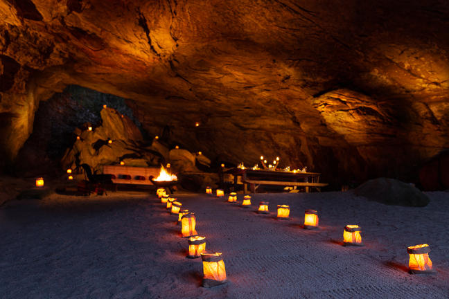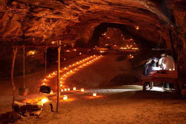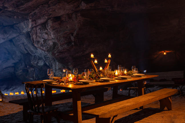 A unique and exclusive dining experience unlike any other: a gourmet dinner nestled within the enchanting embrace of a natural cave.