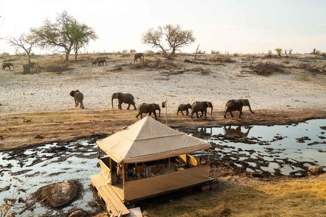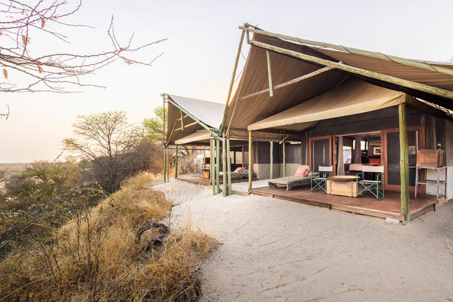 Perched high on a rocky cliff above Botswana’s Boteti River, Meno a Kwena offers one of Africa’s most remarkable armchair safaris. From camp you can watch wildlife gather at the river below – including the dramatic arrival of thousands of zebra during Africa’s second-largest migration. Classic safari tents, warm hospitality, and an unbeatable vantage point make this a wonderfully authentic gateway on the edge of the Makgadikgadi Pans.