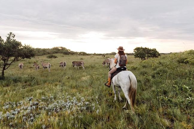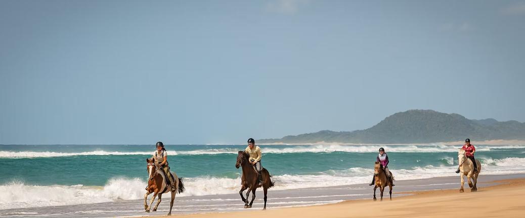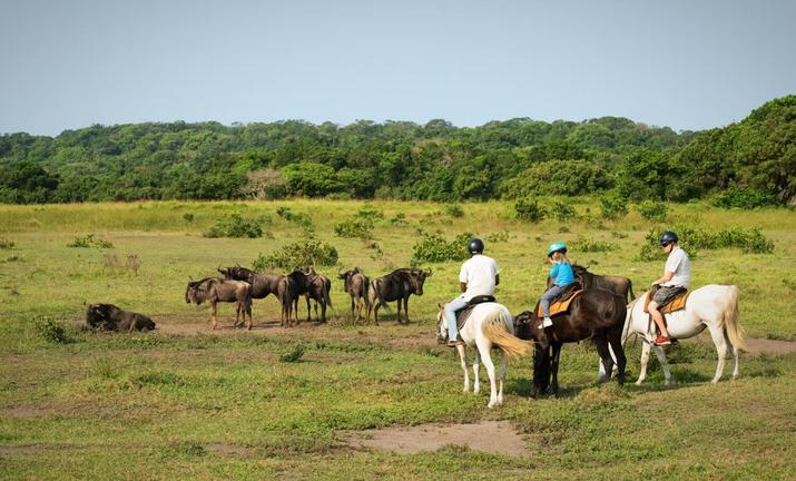 Bush Rides bieden een serene maar opwindende manier om het zuidelijke uiteinde van de Eastern Shores in het iSimangaliso Wetland Park te verkennen. Gasten beginnen aan een begeleide route van een uur of twee uur langs wilde dieren uit de vlaktes, zoals zebra's, gnoes, wrattenzwijnen en impala's, met af en toe een glimp van ongrijpbare luipaarden, buffels of olifanten in de verte. Ideaal voor beginners en gezinnen: ruiters glijden rustig te paard om wilde dieren van dichtbij te observeren zonder het natuurlijke gedrag te verstoren. Deze rustige ritten zijn afgestemd op het vaardigheidsniveau van elke deelnemer.