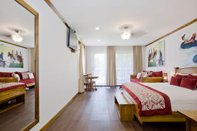 A perfect solution for families or close groups of friends wishing to share accommodations. Our Family Superior Rooms are located near the main reception area, near the swimming pool, restaurant, and activity center. Enjoy views of the tropical vegetation and diverse birdlife from your covered porch or hall.