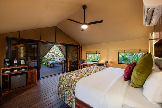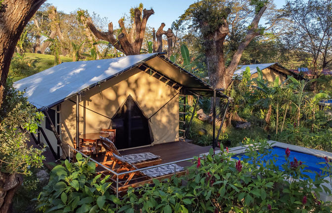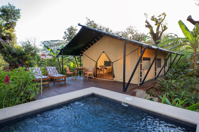 Indulge in the ultimate escape with the Tented Camp Experience at Hacienda Guachipelín, where adventure meets unparalleled luxury in the heart of Costa Rica's breathtaking Rincón de la Vieja National Park. This exclusive retreat offers the perfect balance of nature and comfort, allowing you to reconnect with the wild while indulging in the finest eco-luxury. Picture yourself lounging on your private deck with a plunge pool, sipping your morning coffee as the sounds of the jungle awaken around you. Each detail, from the elegant interiors to the organic bath products, has been carefully curated to enhance your experience. Start your day with an à la carte breakfast served right on your deck, and enjoy modern comforts like air conditioning, high-speed Wi-Fi, and premium bedding. Whether you’re craving romance, adventure, or pure relaxation, the Tented Camp Experience is your gateway to a once-in-a-lifetime getaway that will leave you yearning for more.