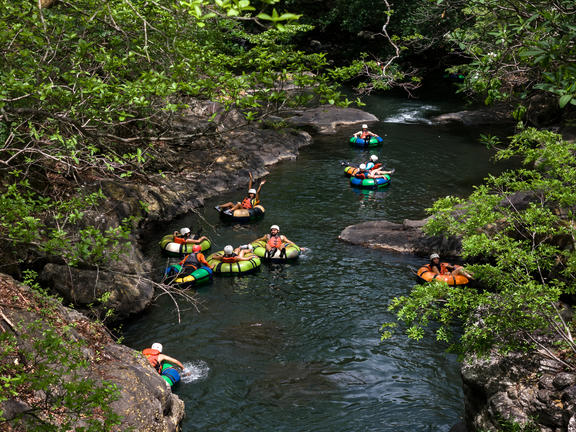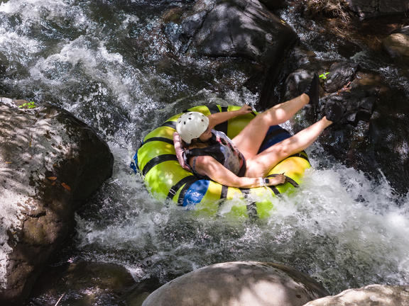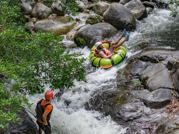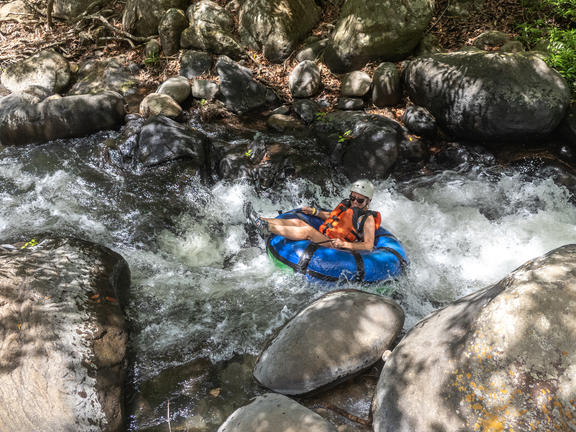 Enjoy non-stop fun and excitement bouncing and splashing down five km (three miles) of Class II and III rapids along this narrow, rushing river of crystal clear water. There are plenty of quiet pools along the way to appreciate the beautiful tropical scenery of the Rio Negro (Black River). Our special, individual river tube rafts are designed with handles and protective bottoms. Guides go with you and ensure your safety and enjoyment throughout the duration of your experience.