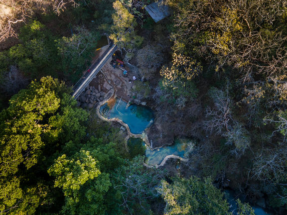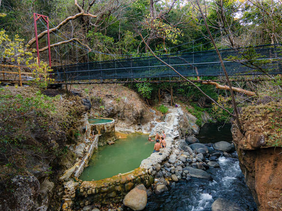 Surrounded by a dense dry tropical forest, the Rio Negro Hot Springs area is beautiful and peaceful. The crystal clear waters of the river flow near the 10 pools built on the riverbank, filled with thermal waters rich in minerals, naturally heated in the depths of the volcano. You can access the pools on both banks of the river thanks to two suspension bridges.
