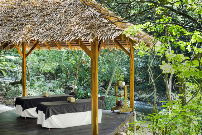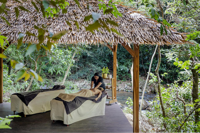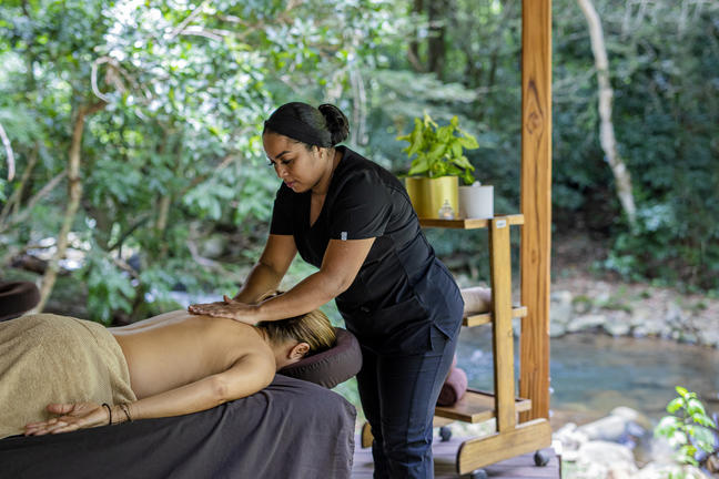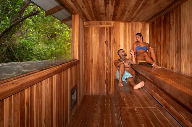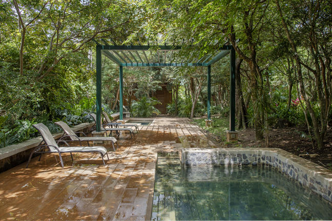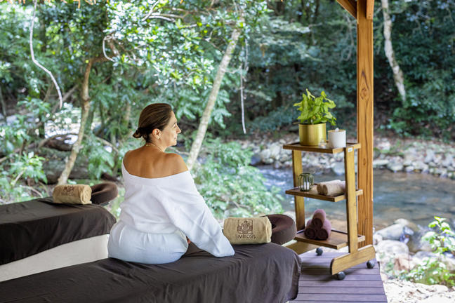 At Simbiosis Spa, located in the heart of the transitional tropical dry forest at the foot of the majestic Rincón de la Vieja Volcano and beside the Colorado River, we invite you to reconnect with yourself and renew your energy in a unique natural setting. Our thermal waters, fed by volcanic activity, are naturally enriched with minerals that promote health and relaxation. They are complemented by volcanic mud springs and mineralized clay pools, offering exfoliating and regenerative properties for your skin. We also feature a dry sauna with forest views, open-air massage areas, and a treatment room surrounded by the sounds and aromas of nature. The thermal circuit guides you through stages of wellness: sauna, volcanic mud, solarium, thermal waters, and cold-water pools, in a process designed to detoxify, relax, and revitalize your body. Our therapists accompany you every step of the way, starting with a welcoming herbal drink prepared with plants from our gardens. You may also complement your experience with a relaxing or therapeutic massage, or choose from body wraps made with local ingredients. Each service is designed to enhance your well-being and deepen your connection with nature. Visit our wellness spa for a revitalizing experience!