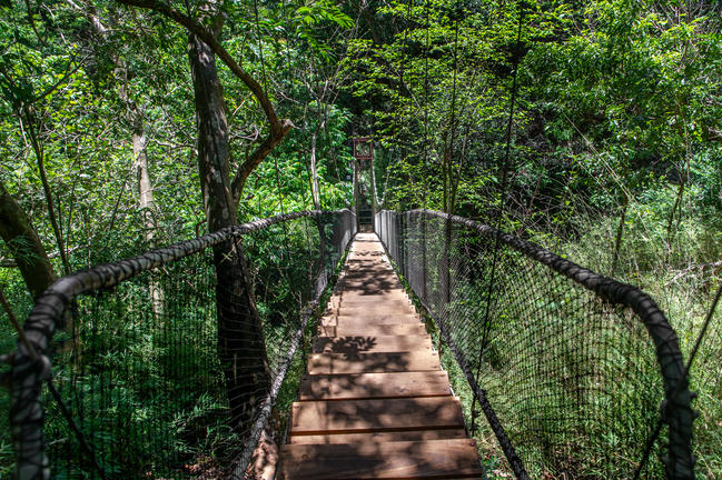 Your excitement begins a short walk from Hacienda Guachipelin’s Adventure Center to the first zip line platform. Have exhilarating fun on seven zip line cables, one hanging bridge, two Tarzan swings, a controlled 20-meter (65-foot) rappel, natural rock climbing wall, and via ferrata traverses and climbs. The tour generally takes between 90 minutes and two hours to complete.