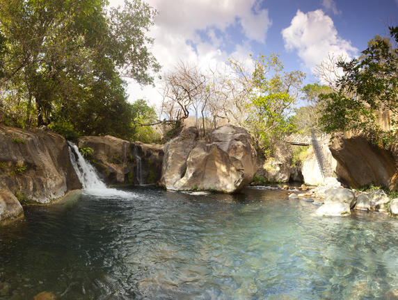 Las Chorreras waterfall is located 1.5 km from Hotel Hacienda Guachipelin. Walk for 30 minutes along beautiful forest trails to reach the waterfall, enjoying the picturesque landscape of the dry tropical forest and observing the wildlife along the way. You’ll have plenty of time to relax at the waterfall before walking back to the hotel.
