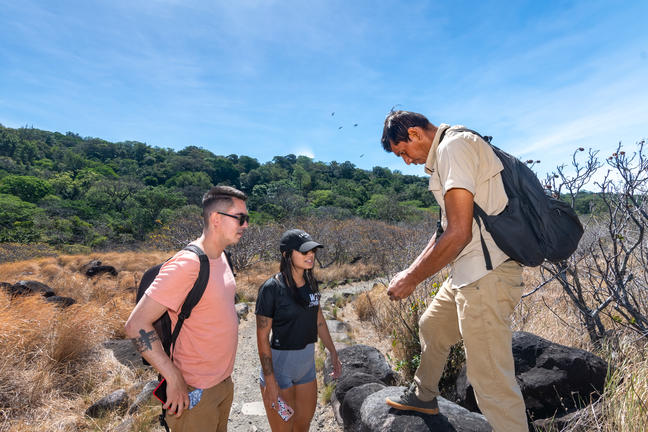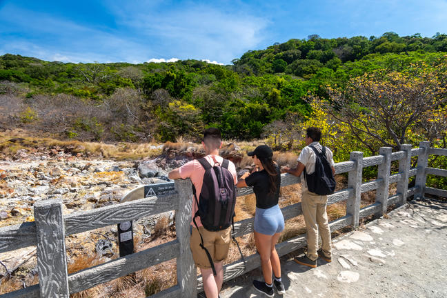 Transportation to the entrance of the national park and the return trip is by vehicle from Hacienda Guachipelin (10 minutes per trip).