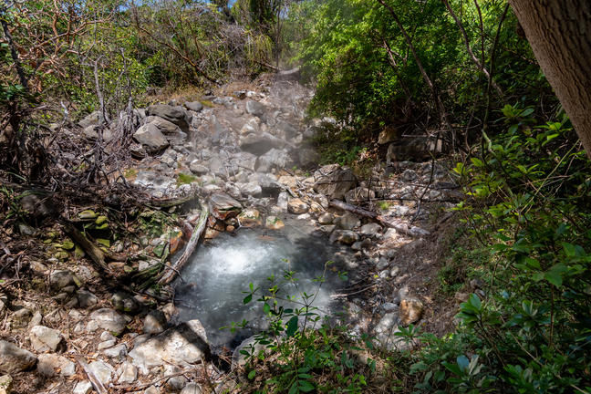 Beautiful and relaxing, the volcanic hot springs at Hacienda Guachipelin bubble up on the Rio Negro, naturally heated by the Rincon de la Vieja Volcano — the largest and most active volcano in Guanacaste, Costa Rica.