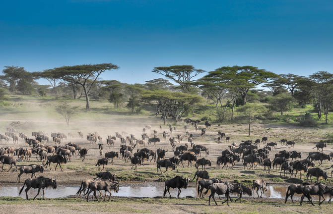 One authentic mobile tented camp, but in two locations, Lemala Ndutu & Lemala Mara moves north and south with the seasons to ensure guests enjoy ringside seats to the spectacle of the magnificent wildebeest migration year-round. Both are set up in sublime locations offering a high-quality safari experience with excellent guiding.