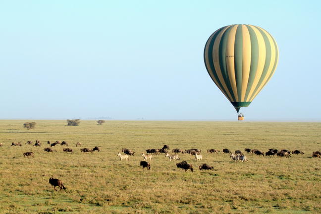 A hot air balloon safari provides an unparalleled vantage point for viewing the wilderness landscape. Drift peacefully above the expansive savanna, carried by gentle breezes across this pristine terrain. From your aerial perch, witness massive wildebeest migrations (in season), observe predators on the hunt, or simply absorb the breathtaking vistas stretching to the horizon. Your flight concludes with an extraordinary bush breakfast in the heart of the wilderness. For a truly once-in-a-lifetime aerial adventure, few destinations can match this spectacular setting.
