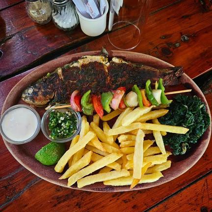 Restaurace Trout Tree, postavená v obrovském fíkovníku podél řeky Burguret, pod horou Mount Kenya, nabízí skutečně jedinečný kulinářský zážitek. Restaurace podává čerstvé pstruhy z pstruhových rybníků pod ní, grilované k dokonalosti. Na jídelním lístku je také prvotřídní hovězí maso Laikipia a vegetariánské možnosti. O víkendech je k dispozici dětské menu a pec na pizzu se roztápí, aby nabídla široký výběr lahodných pizz. Restaurace má kapacitu až 60 osob. Je domovem dvou skupin opic colobus a několika stromových damanů, stejně jako hojnosti ptactva.