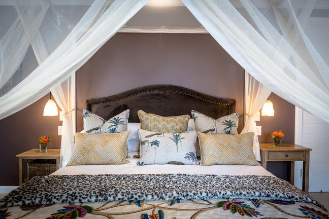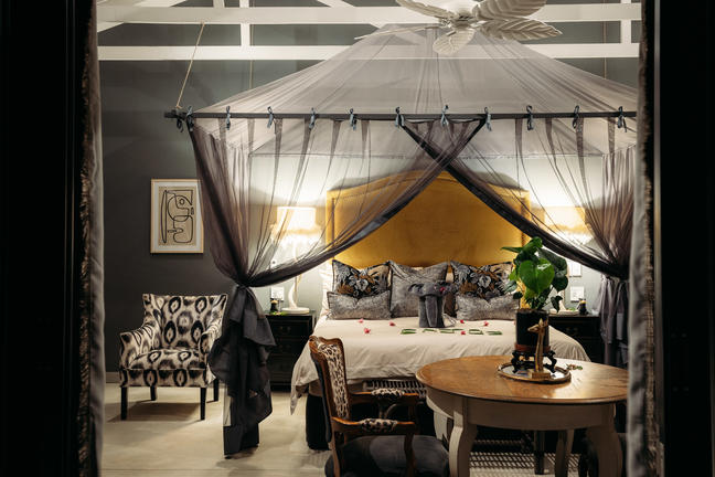 Ihre private Terrasse ist gemütlich eingezäunt und erhebt sich über einem üppigen Garten. Abends erstrahlen diese Zimmer in einem wunderschönen goldenen Glanz. Alle verfügen über ein Kingsize-Bett und das Badezimmer hat eine separate Badewanne und Dusche. Es gibt einen Durchgang, der von der Hauptlodge zu Honey Badger und Nyala führt, aber es gibt auch private Eingänge zu jedem dieser Zimmer. Jedes dieser Zimmer hat eine individuelle Note, die ein „Jenseits von Afrika“ -Gefühl vermittelt und von afrikanischen und asiatischen Aspekten inspiriert ist.