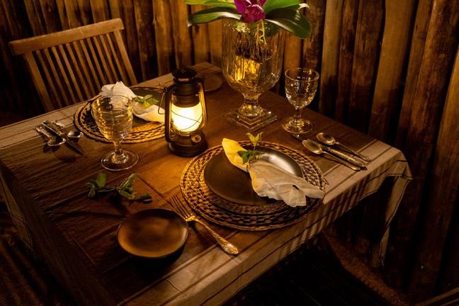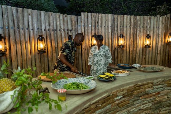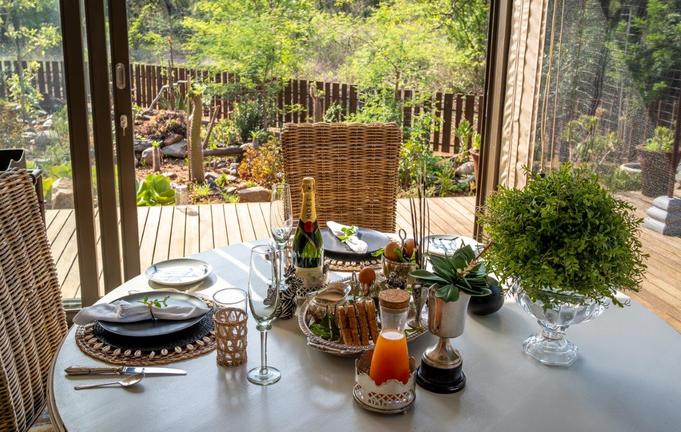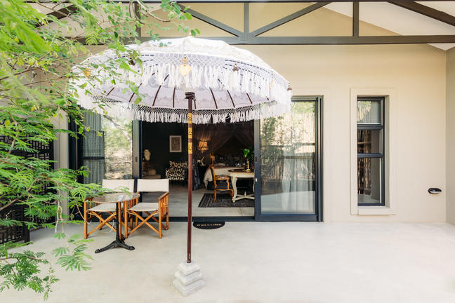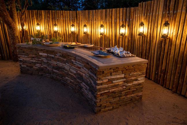 Außenbadewanne mit Sternenlichtduschen: Jede Suite verfügt über eine private Terrasse, auf der Sie sich entspannen, die Sonne genießen und sogar eine Außendusche genießen können, während Sie von den Sehenswürdigkeiten und Geräuschen des Busches umgeben sind.