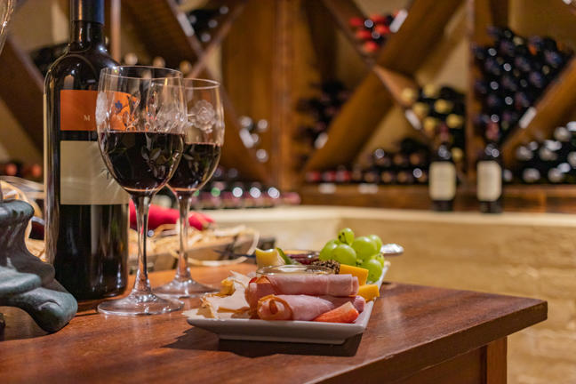 The Hacklewood Wine cellar is a delightful underground treasure trove, where guests are invited to browse an impressive selection of imported white wines and champagnes, as well as a rare collection of vintage reds.