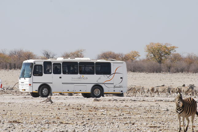 Pirschfahrt durch den Etosha National Park auf der Suche nach Raubtieren, Antilopen, Reptilien und einer riesigen Anzahl an Vögel. Die Fahrzeuge ermöglichen mit den großen Schiebefenster die bestmögliche Sicht auf die Tiere und Landschaft. Je nach Jahreszeit, werden verschieden Routen gefahren, jedoch konzentrieren sich diese hauptsächlich auf die zahlreichen Wasserstellen, wo sich die Tiere sammeln um Ihren Durst zu löschen.
