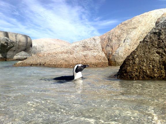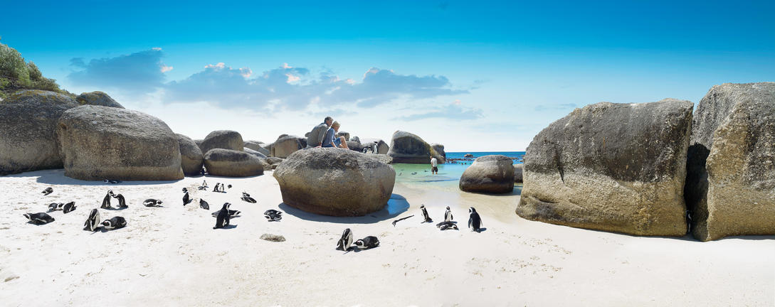 Since 1983, when the first Jackass Penguins made Boulders Beach their home, the population has risen to over 2500 penguins. Boulders Beach Coastal Park is now a nature reserve where the penguins, which are endangered in the Western Cape, are monitored and protected. Visitors are able to watch the penguin colony from close by and get an in-depth introduction into the breeding habits and social structure of these birds. The Jackass Penguin is so named because its call that is somewhat similar to that of a braying donkey. To distinguish between South American penguins that make a similar sound, and because this is the only species that reproduces in Africa, it has been celebrated the “African penguin”.