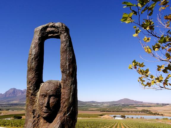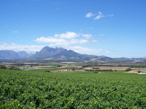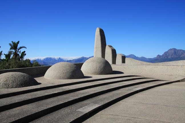 Surrounded by mountains and vineyards, Paarl is a commercial centre on the banks of the Berg River. There are actually vineyards and wineries within the sprawling town limits, including the huge 'Kooperatieve Wijnbouwers Vereniging', a co-operative that both regulates and dominates the South African wine industry. There is some excellent Cape Dutch architecture in the area, and some significant monuments to the Afrikaner culture. Europeans settled in the surrounding valley in the 1680s and Paarl was established in 1720. It became a centre for wagon building, but it is most famous for its important role in the development and recognition of Afrikaans as a separate language.