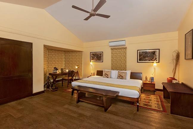 Singinawa Jungle Lodge is located within 100 acres of forest adjoining Kanha Tiger Reserve in Madhya Pradesh. Guests can explore nearby attractions such as the Kanha National Park. Guest cottages feature en-suite bathrooms, fireplaces, minibars, tea and coffee making facilities, lounge chairs and workstations. The lodge features a central dining area and bar serving fresh organic produce with Indian and continental cuisine. Facilities include a swimming pool, Meadow Spa with Indian and oriental treatments, and guided safaris, making it an ideal retreat blending luxury, conservation, and wilderness adventure.