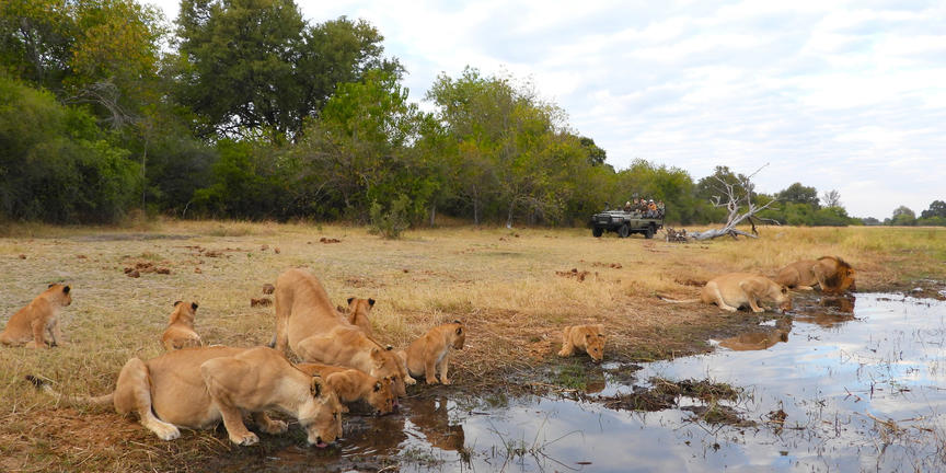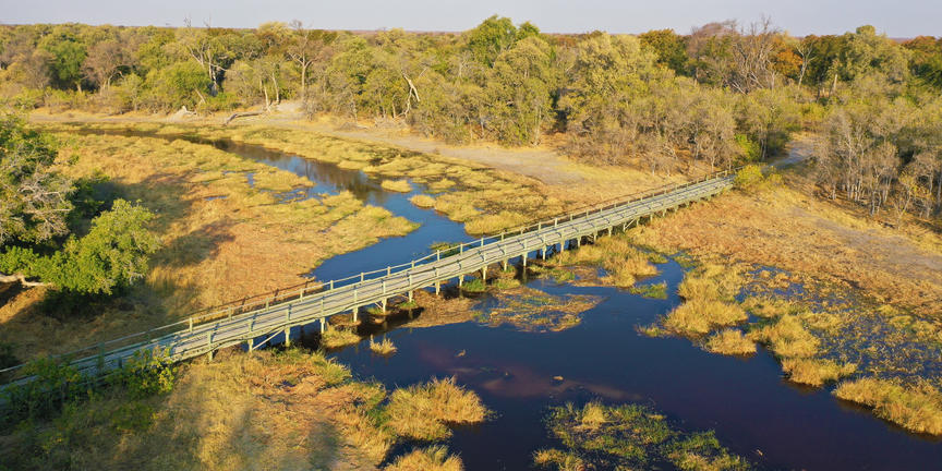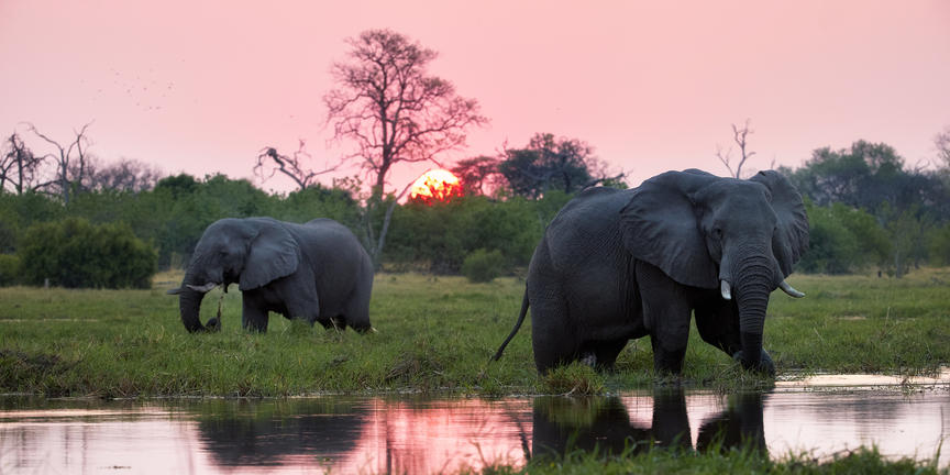De Khwai-rivier stroomt langs de oostelijke rand van de Okavango-delta in het noorden van Botswana en vormt een duidelijke grens tussen het Moremi Game Reserve en de Khwai Community Concession. Het permanente water ondersteunt het hele jaar door dieren in het wild en ondersteunt moerasbossen, open uiterwaarden en seizoensgebonden lagunes die veranderen met de jaarlijkse stijging en daling van de delta. Olifanten verplaatsen zich gestaag tussen voedselgebieden, terwijl lechwe en buffels langs de oevers grazen onder toezicht van leeuwen en Afrikaanse wilde honden. Nijlpaarden rusten overdag uit in diepere kanalen en roeren tegen de avond, en visarenden zitten in rivierbomen. Bezoekers verkennen per 4x4, mokoro-kano en begeleide wandelingen, waarbij ze van dichtbij en op de grond kennismaken met het landschap en de wilde dieren.