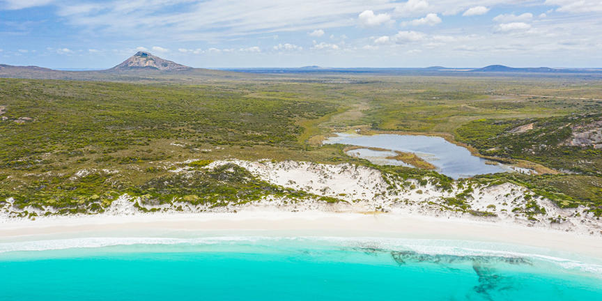 Cape Le Grand National Park is a national park in Western Australia, situated southeast of Perth. Covering an area of 31,801 hectares area, this ancient landscape is home to many primitive relict species. Cape Le Grand National Park offers spectacular coastal scenery and rolling heathlands inhabited by pygmy possums, western grey kangaroos and a diversity of colourful wildflowers. There are sheltered bays where visitors can enjoy a picnic and wide sandy beaches ideal for swimming surfing, fishing, or boating. Also available are walking trails, some of which will reward a hiker with panoramic views of the surrounds.
