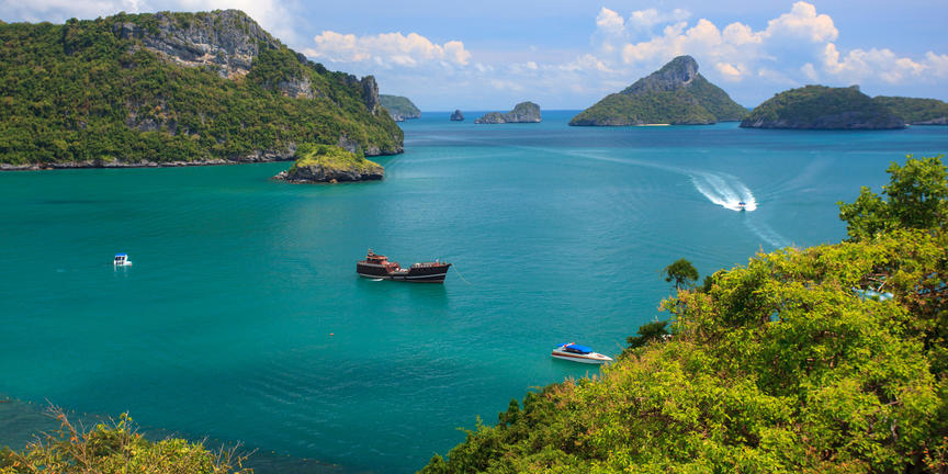Do mořského parku Ang Thong, který zahrnuje více než 40 ostrovů a rozkládá se na téměř 100 kilometrech čtverečních, se dostanete lodí z Koh Pha Ngan a Samui. Tento kousek tropického ráje je nutností pro všechny cestovatele s vášní pro oceán a prostě přírodu obecně – návštěvníci mohou zažít nádherné šnorchlování a potápění v nedotčených vodách parku, hemžících se pestrobarevnými rybami, krásnými korálovými zahradami a řada dalších mořských živočichů. Sídlo parku se nachází na Koh Wua Talab, kde je také malé návštěvnické centrum a řada stezek v bujné džungli.