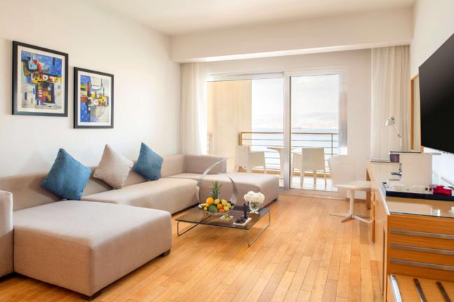 Kempinski Hotel Aqaba is located along the shores of the Red Sea in the heart of Aqaba city, offering direct access to the beach and proximity to local attractions such as the Ayla Oasis and Aqaba Marine Park. Rooms feature air-conditioning, tea/coffee making facilities, and minibars. Dining options include AM PM Restaurant, Olea-The Grill, and Crust, each offering distinct culinary experiences. Leisure facilities comprise an infinity-edge pool, a two-floor spa with treatment rooms, and a fitness centre.