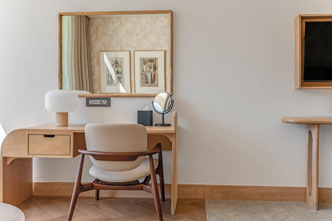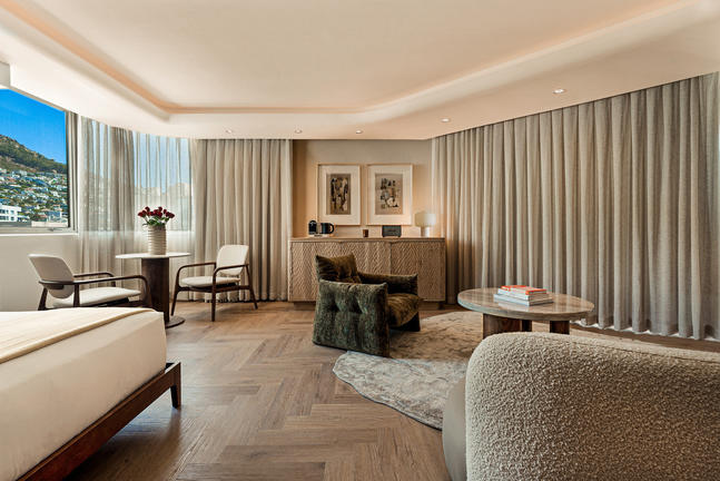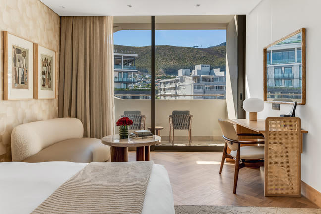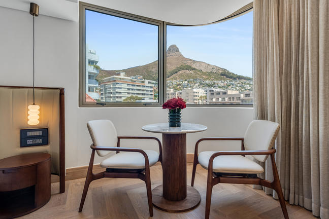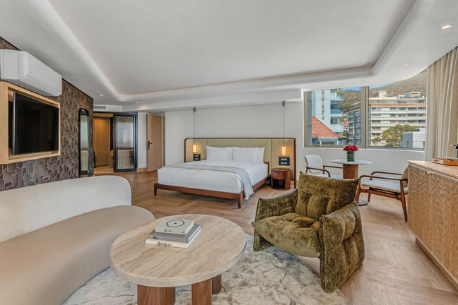 Overlooking the iconic Lion’s Head, the Mountain-Facing Rooms present a city-side urban oasis. Each room includes a private balcony, rain shower, Nespresso machine, refreshment station, smart TV, and Marshall music speaker. Refined linens, Kove Collection’s signature “Echo” amenities and tasteful interiors create a calm retreat framed by stunning mountain views.