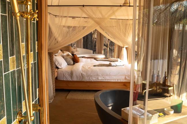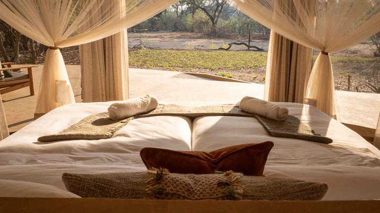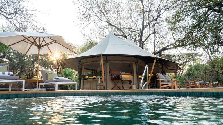 Sango Dadiso Camp, nestled in the heart of the Sango Wildlife Conservancy in Birchenough Bridge, Zimbabwe, offers an exclusive safari experience surrounded by pristine wilderness. The camp features elegant tent suites with air conditioning, TVs, private lounges, and complimentary Wi-Fi. Dining occurs in a spacious tent with a lounge and scenic views, ensuring a relaxing atmosphere. Additional facilities include a swimming pool, a gym and spa tent, guide tents for personal safari experiences, and a fireside area for evening gatherings.