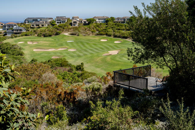 Pezula Golf Course | Hole 14Credit: Village N LifeHole 14 features an elevated tee offering panoramic views and a peaceful atmosphere. This serene setting enhances the golfing experience, making it a favourite spot for guests enjoying championship-level play near Pezula Nature Retreat.