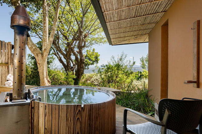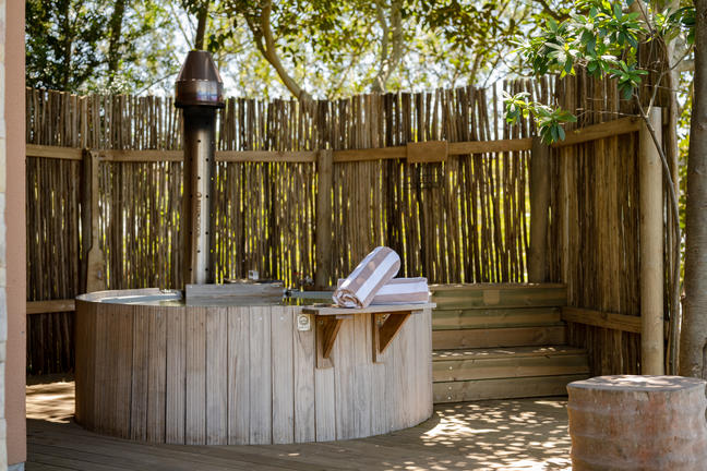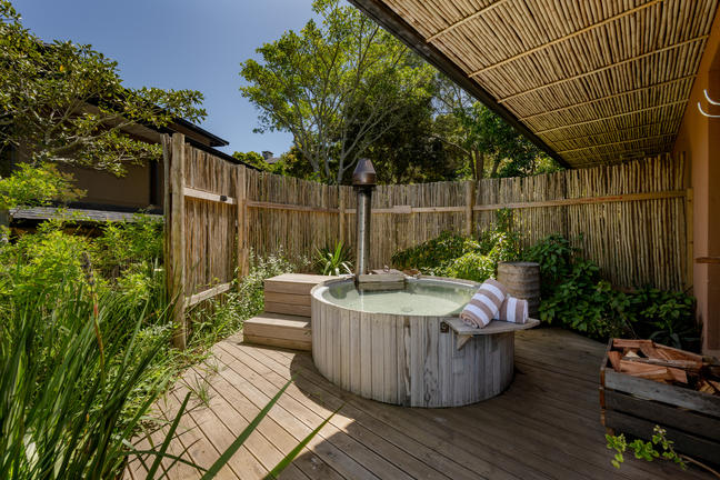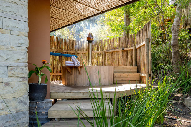 Rooms | Wood-fired Hot TubCredit: Village N LifeEnjoy a serene soak in a secluded outdoor wood fired hot tub located just outside the suite, embraced by lush greenery. This exclusive feature invites guests to relax and rejuvenate in a peaceful setting that captures the essence of Garden Route tranquillity.