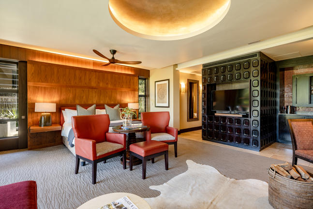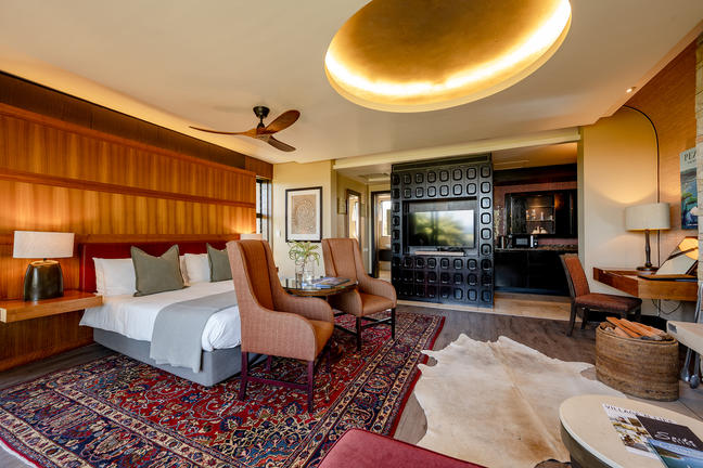 Eco Sky Room ViewCredit: Village N LifeOur environmentally friendly Sky Eco Suites feature private balconies with stunning views of the lagoon, ocean, golf course, or natural gardens. Designed with sustainability in mind, these suites offer natural ventilation and heating instead of traditional air conditioning. Each suite includes a fireplace, a kitchenette, a bathroom with a stone-cast oval bath, and a twin-king bed, and they range in size from approximately 74m² to 86m².